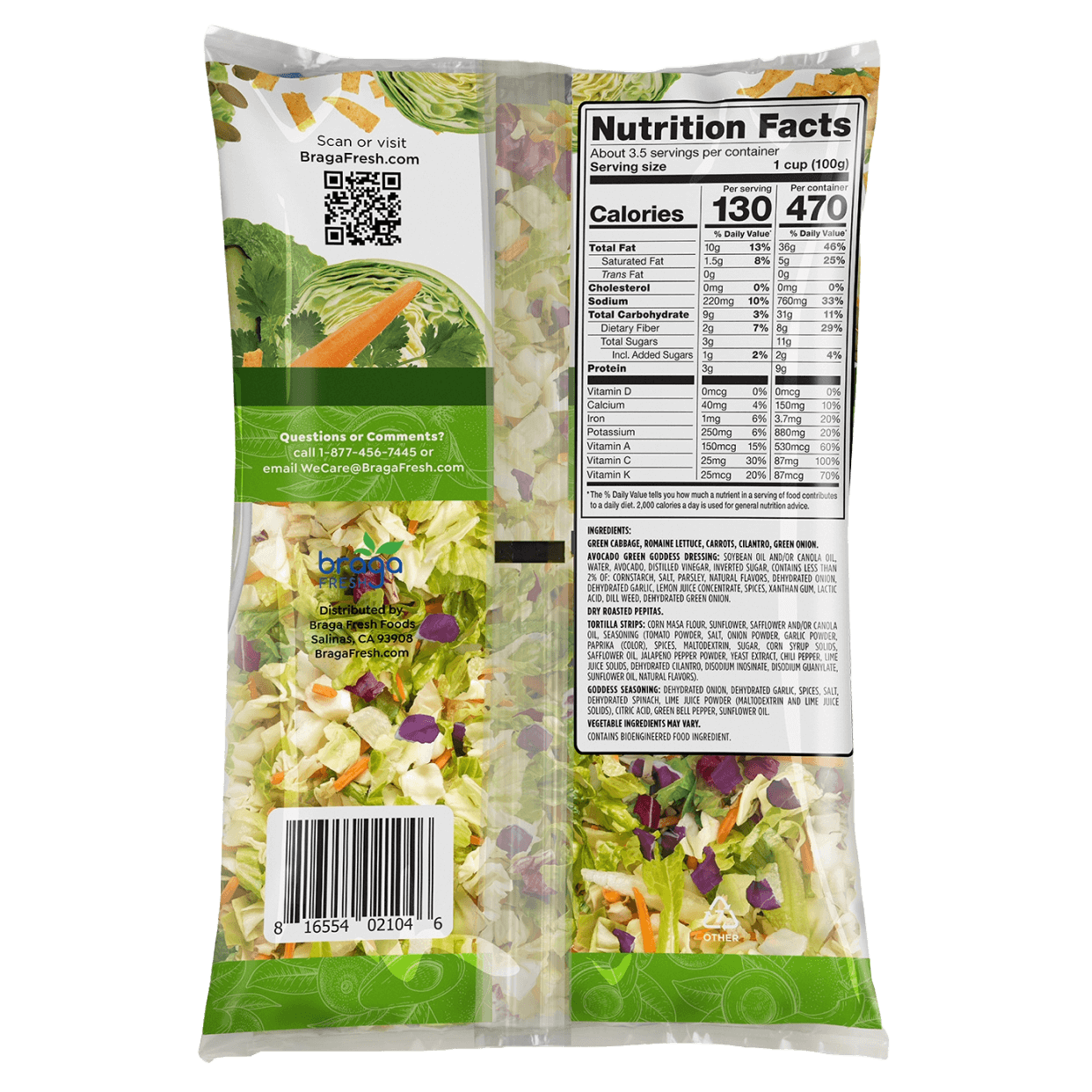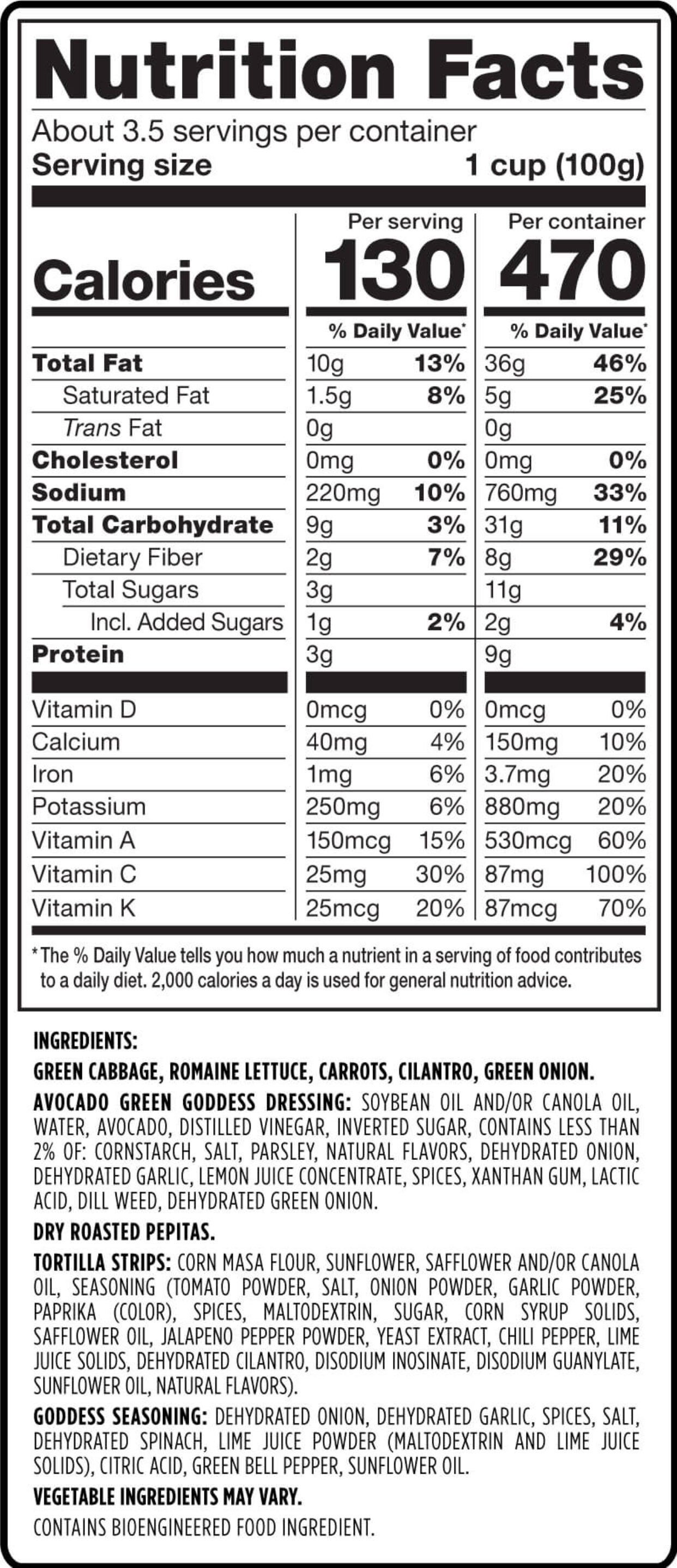 Fresh herb notes with a creamy avocado dressing + stay crunchy flatbread strips + Zingy goddess seasoning packet.