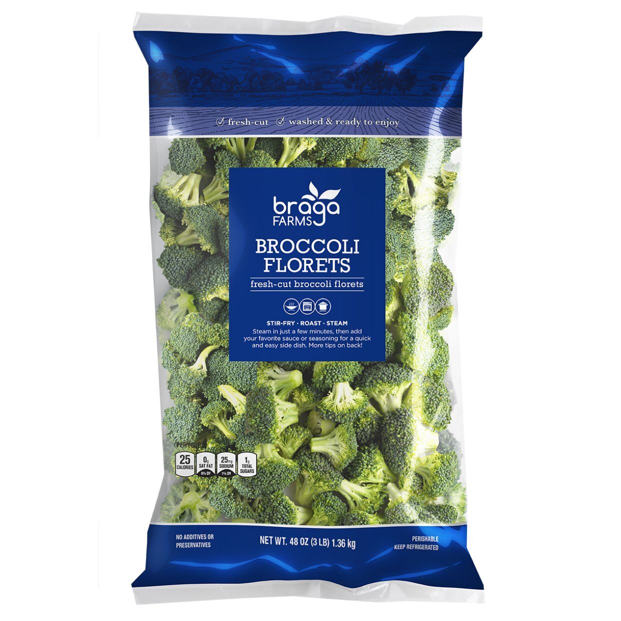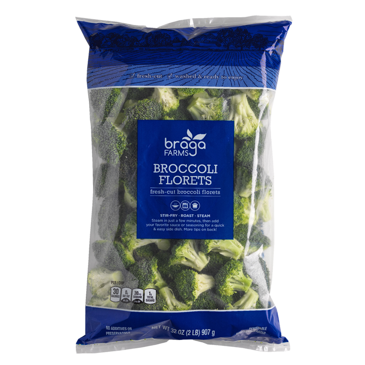 Broccoli florets are versatile and have the added convenience of being washed and ready-to-enjoy making it easier to make convenient, flavorful meals in just minutes. Enjoy roasted, steamed, tossed, sautéed, grilled or try them blended for a fresh take on pesto.