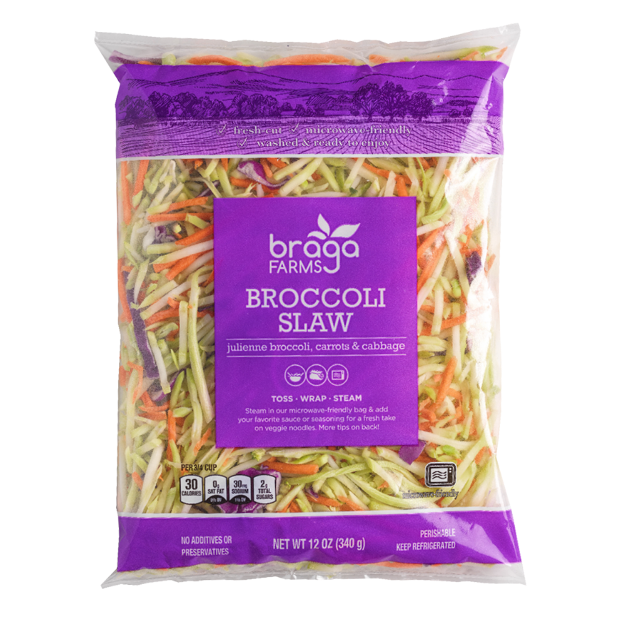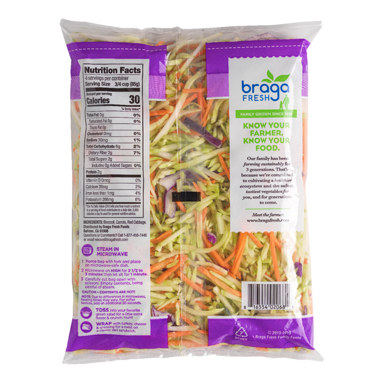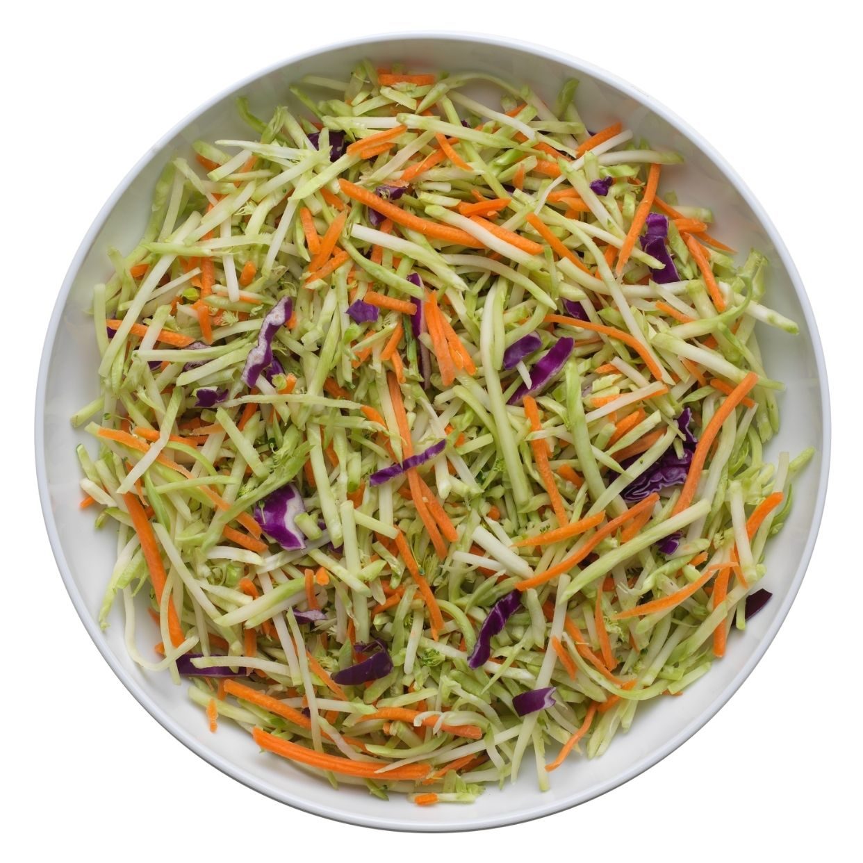 A combination of firm crunchy vegetables including broccoli stems, cabbage, and carrots, it's a great low carb/high fiber choice.
