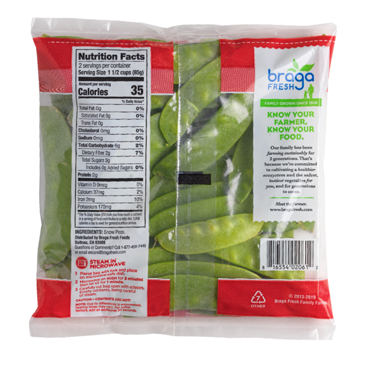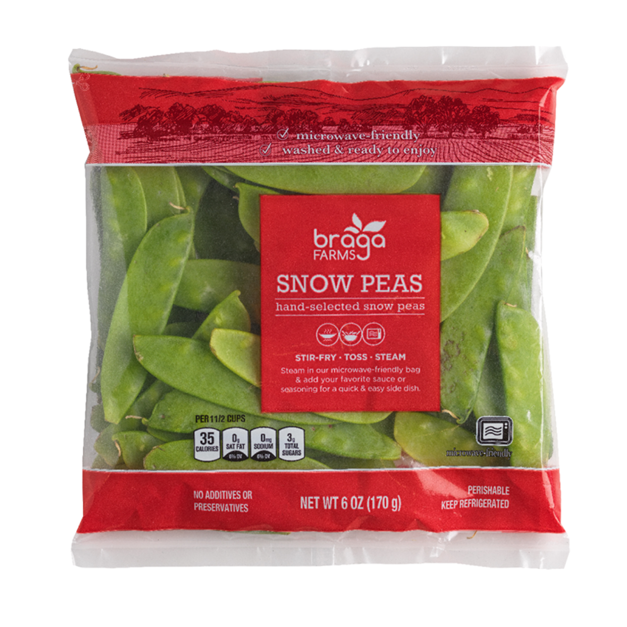Snow peas are packed with vitamins A and C, iron, potassium, dietary fiber, magnesium, folic acid and small levels of healthy fats.
