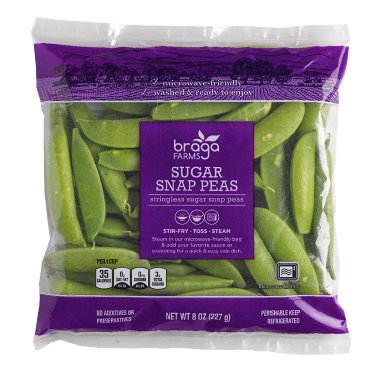 Sugar snap peas may be eaten raw or cooked briefly. They are perfect stir-fried or for use in simple sauté mixes. The whole pod is edible and they have a crunchy flavor and sweet taste.