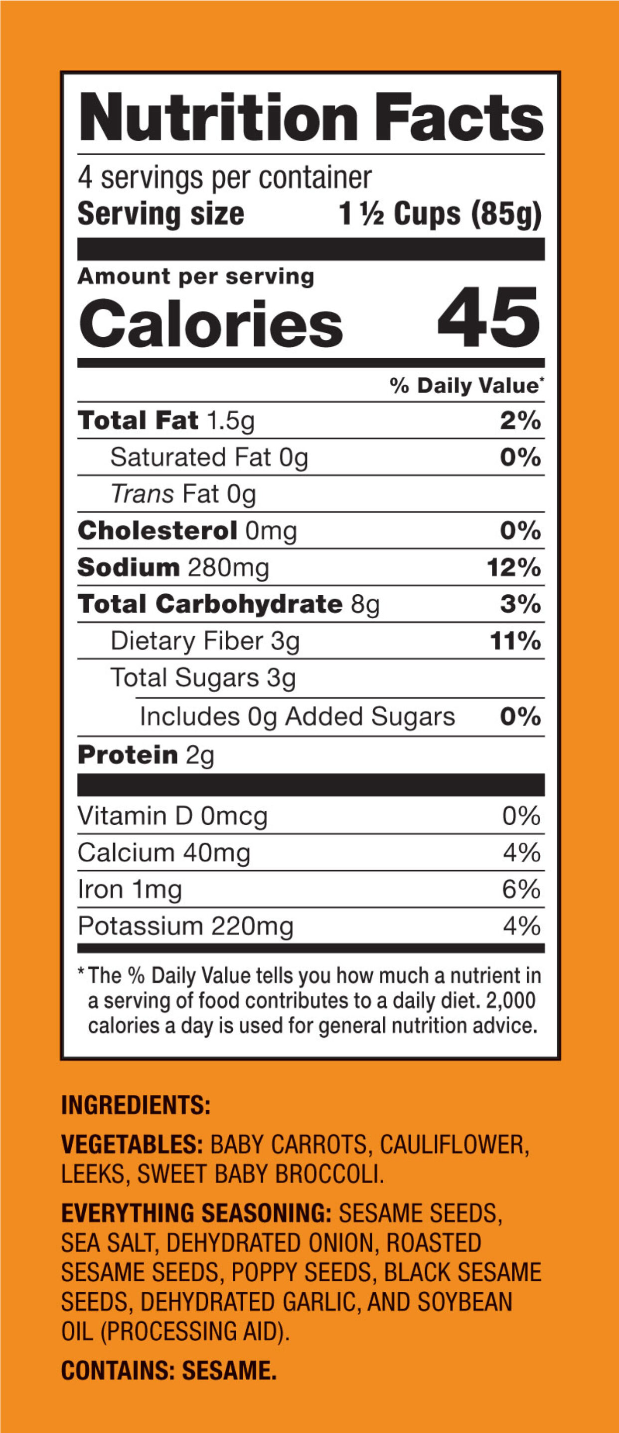 Includes an Everything seasoning packet and is Gluten Free & Vegan.