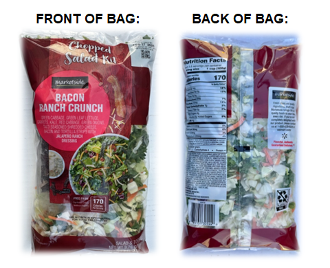 Soledad, Calif., – February 9, 2024 – Braga Fresh is voluntarily recalling a limited quantity of Marketside Bacon Ranch Crunch Chopped Salad Kits containing recalled cheese that contains Listeria monocytogenes, an organism which can cause serious and sometimes fatal infections in young children, frail or elderly people and others with weakened immune systems. Although healthy individuals may suffer only short-term symptoms such as high fever, severe headache, stiffness, nausea, abdominal pain and diarrhea, Listeria infection can cause miscarriages and stillbirths among pregnant women.