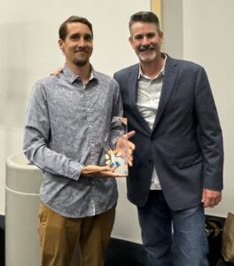 Soledad, CA, October 30, 2023 — Agrology and Braga Fresh are joint recipients of the annual Science & Technology Circle of Excellence Award at the IFPA Global Produce & Floral Show in Anaheim. The award was presented by IFPA’s Chief Science Office, Max Teplitski, to Eric Morgan of Braga Fresh and Charlie Dubbe of Agrology.